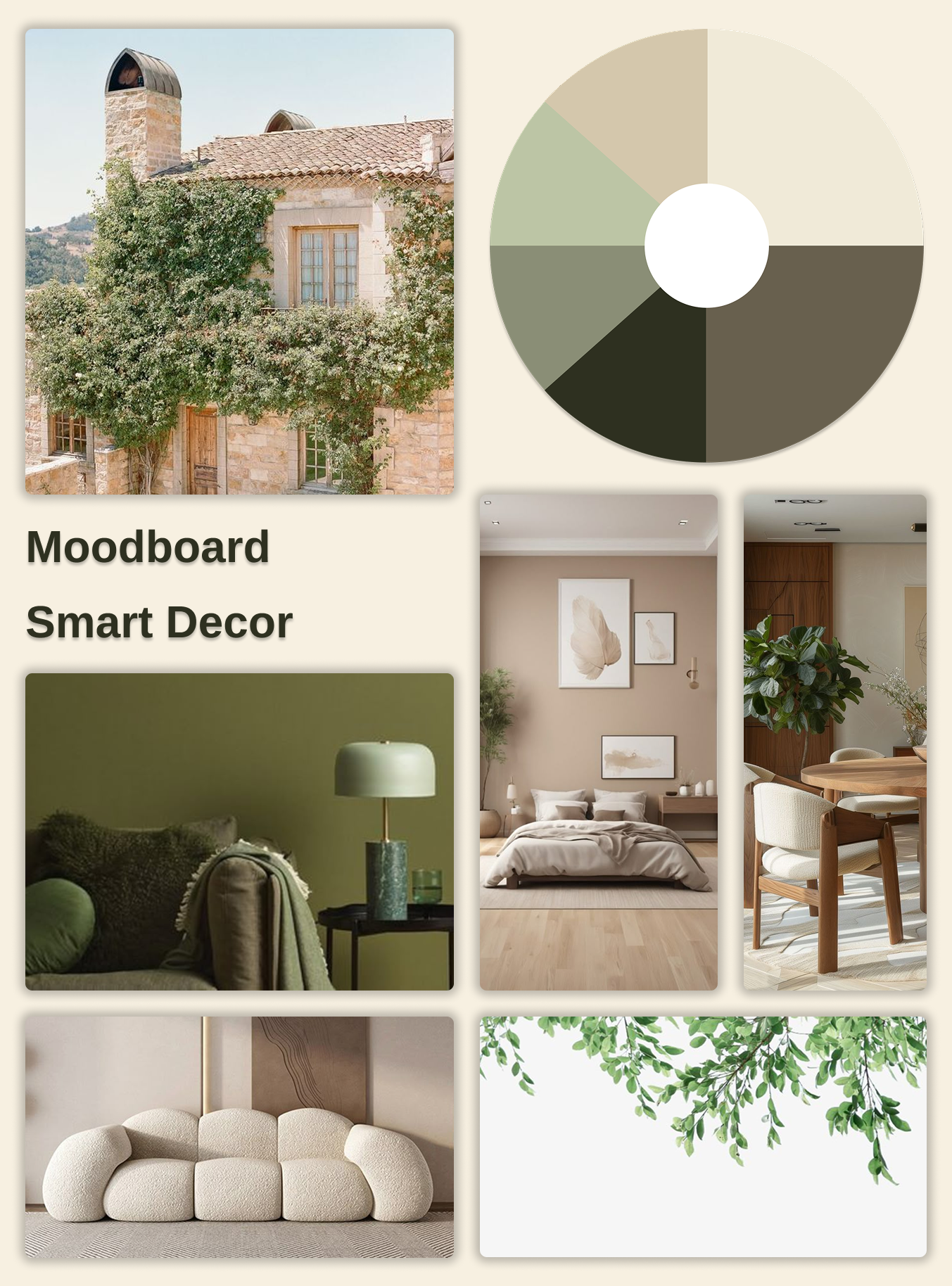 - Soft, natural colors from the moodboard create a calm and inviting atmosphere.